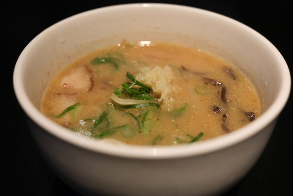 We started with the Original King — thick, creamy broth with extra pork fat floating on top. It sounds heavy, but it was surprisingly smooth. I tasted the pork and fat, but not greasy. The thin, straight noodles balance the thick broth, making it satisfying without being too dense.